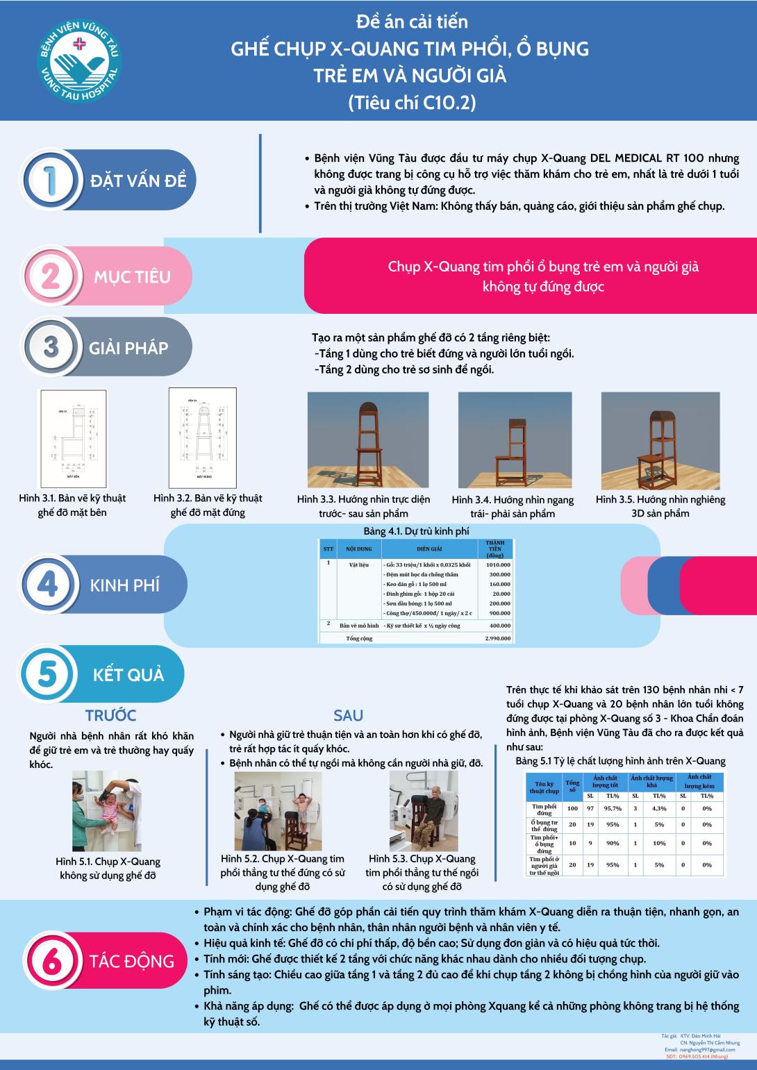 - Phạm vi tác động: Ghế đỡ góp phần cải tiến quy trình thăm khám X-Quang diễn ra thuận tiện, nhanh gọn, an toàn và chính xác cho bệnh nhân, thân nhân người bệnh và nhân viên y tế.