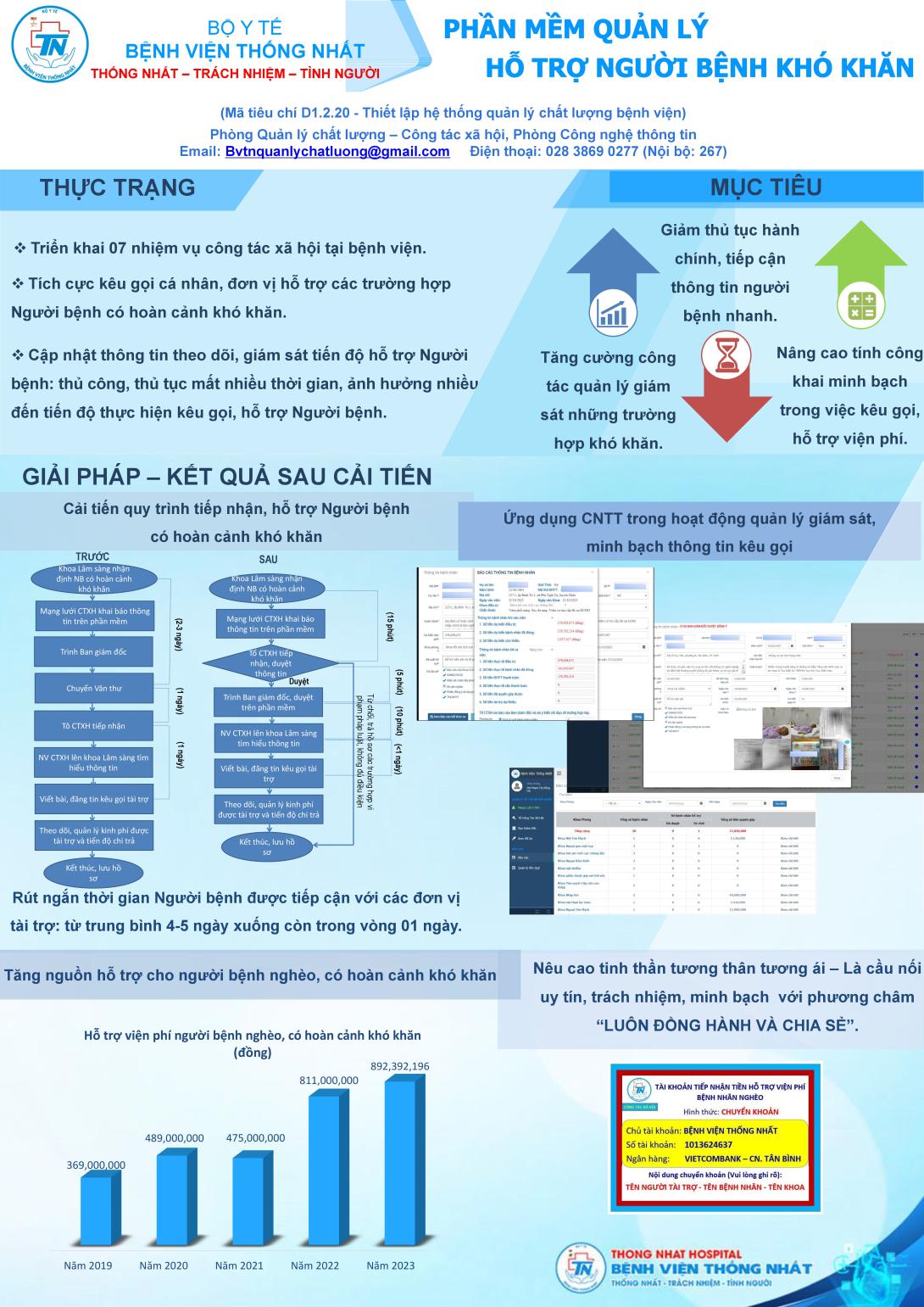 - Cải tiến quy trình tiếp nhận, hỗ trợ Người bệnh có hoàn cảnh khó khăn.