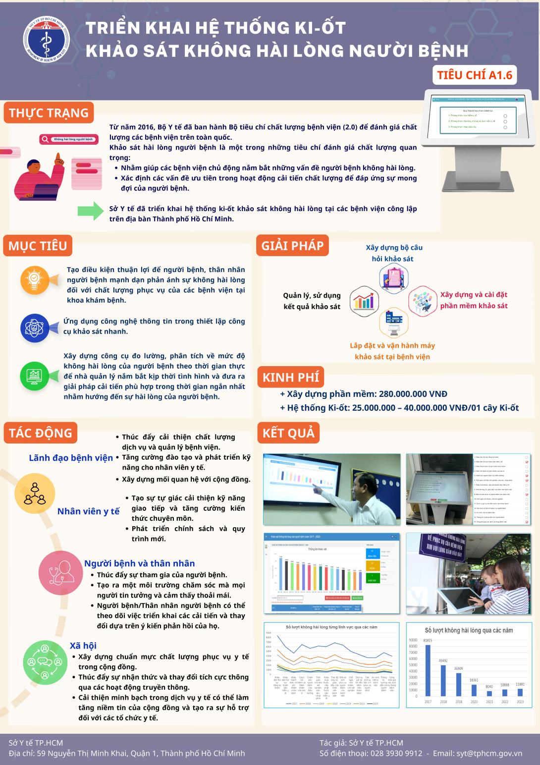 - Sở Y tế đã triển khai hệ thống ki-ốt khảo sát không hài lòng tại các bệnh viện công lập trên địa bàn Thành phố Hồ Chí Minh.