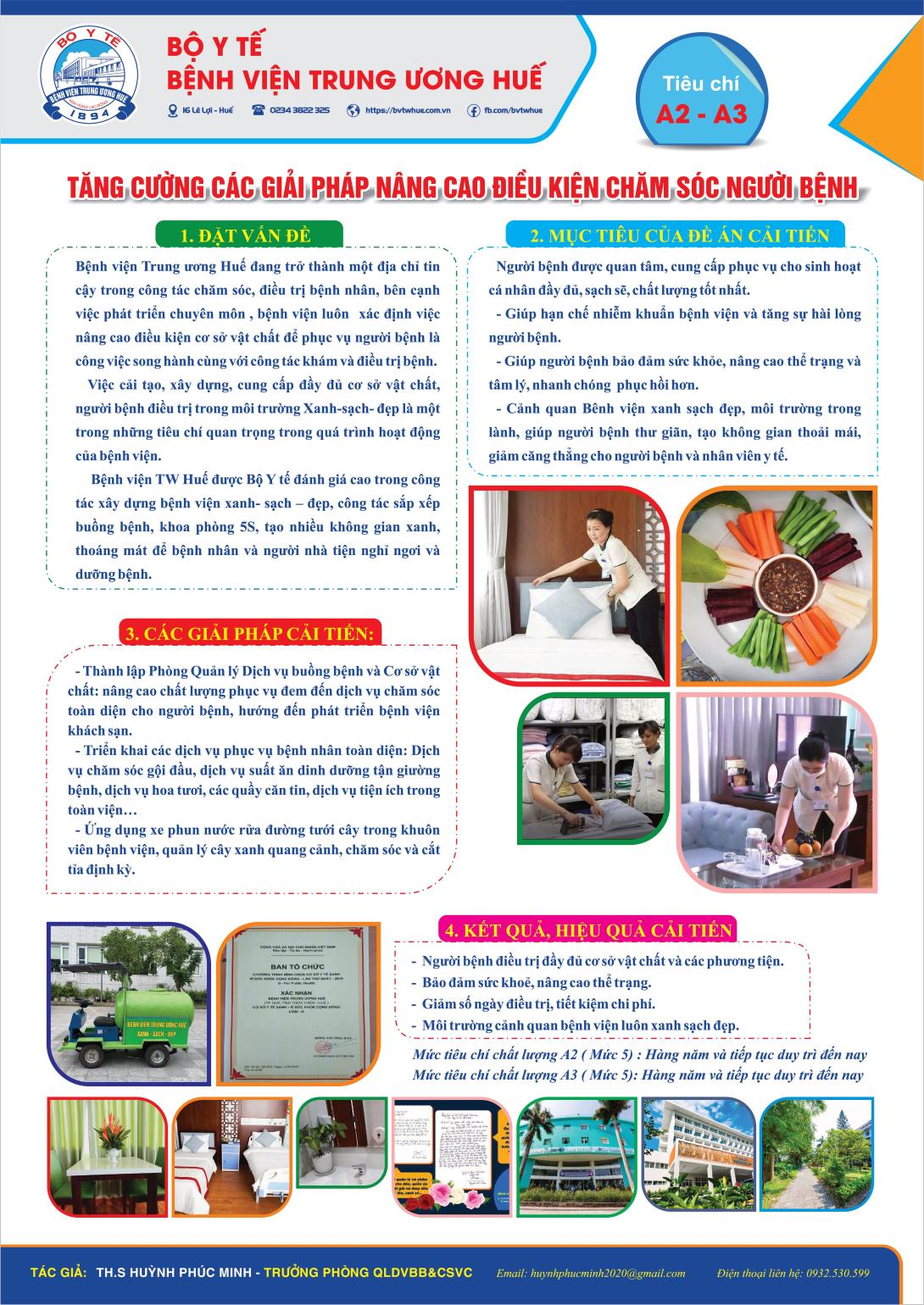 - Bệnh viện TW Huế được Bộ Y tế đánh giá cao trong công tác xây dựng bệnh viện xanh - sạch - đẹp, công tác sắp xếp buồng bệnh, khoa phòng 5S, tạo nhiều không gian xanh, thoáng mát để bệnh nhân và người nhà tiện nghỉ ngơi và dưỡng bệnh.