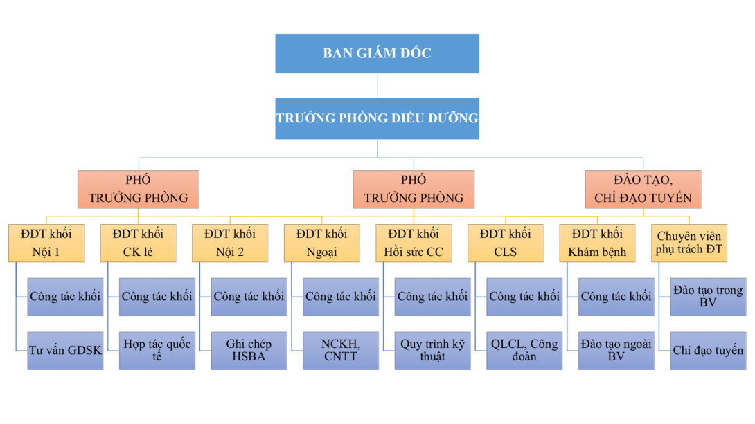 Để thực hiện hiệu quả các nhiệm vụ này, Thông tư 31/2021/TT-BYT đã quy định rõ về hệ thống tổ chức điều dưỡng trong bệnh viện, gồm ba cấp: