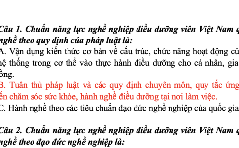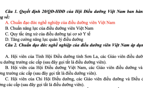 Câu hỏi Chuẩn đạo đức nghề nghiệp Điều dưỡng viên Việt Nam