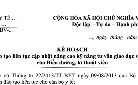 Kế hoạch đào tạo liên tục nâng cao kỹ năng tư vấn – giáo dục sức khỏe cho Điều dưỡng, KTV