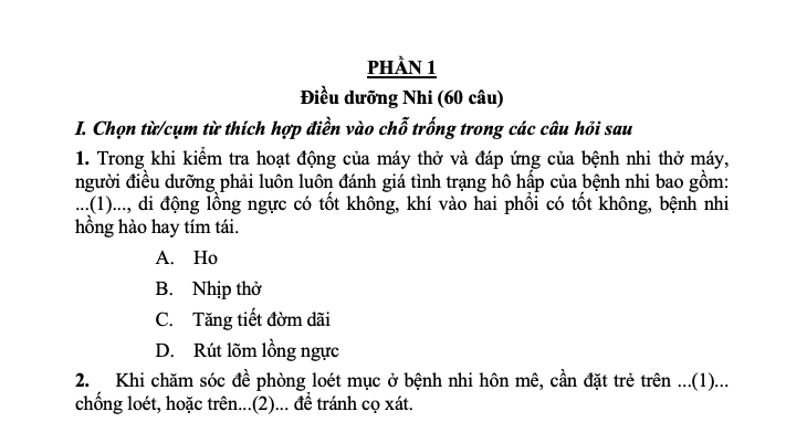 Tên tài liệu: Bộ câu hỏi và đáp án trắc nghiệm – Điều dưỡng Nhi khoa