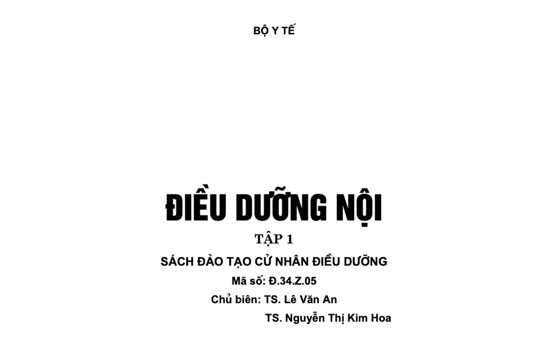Hai tập sách này là tài liệu dạy và học chính thức của ngành Y tế Việt Nam, do Bộ Y tế ban hành, nhằm phục vụ công tác đào tạo Cử nhân Điều dưỡng. Giáo trình được biên soạn bởi các nhà giáo tại Trường Đại học Y Dược Huế, với mục tiêu trang bị kiến thức cơ bản và chuyên ngành cho sinh viên điều dưỡng, đặc biệt trong lĩnh vực Điều dưỡng Nội khoa.