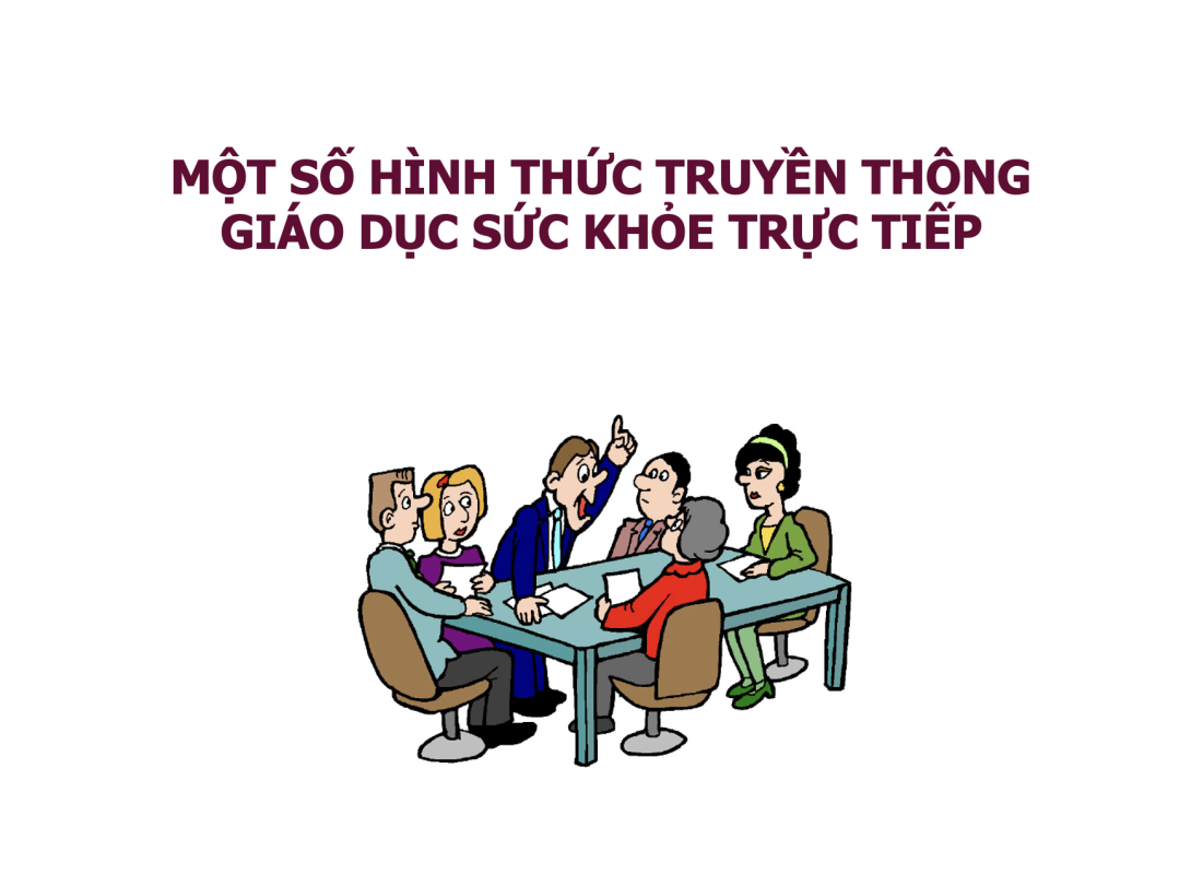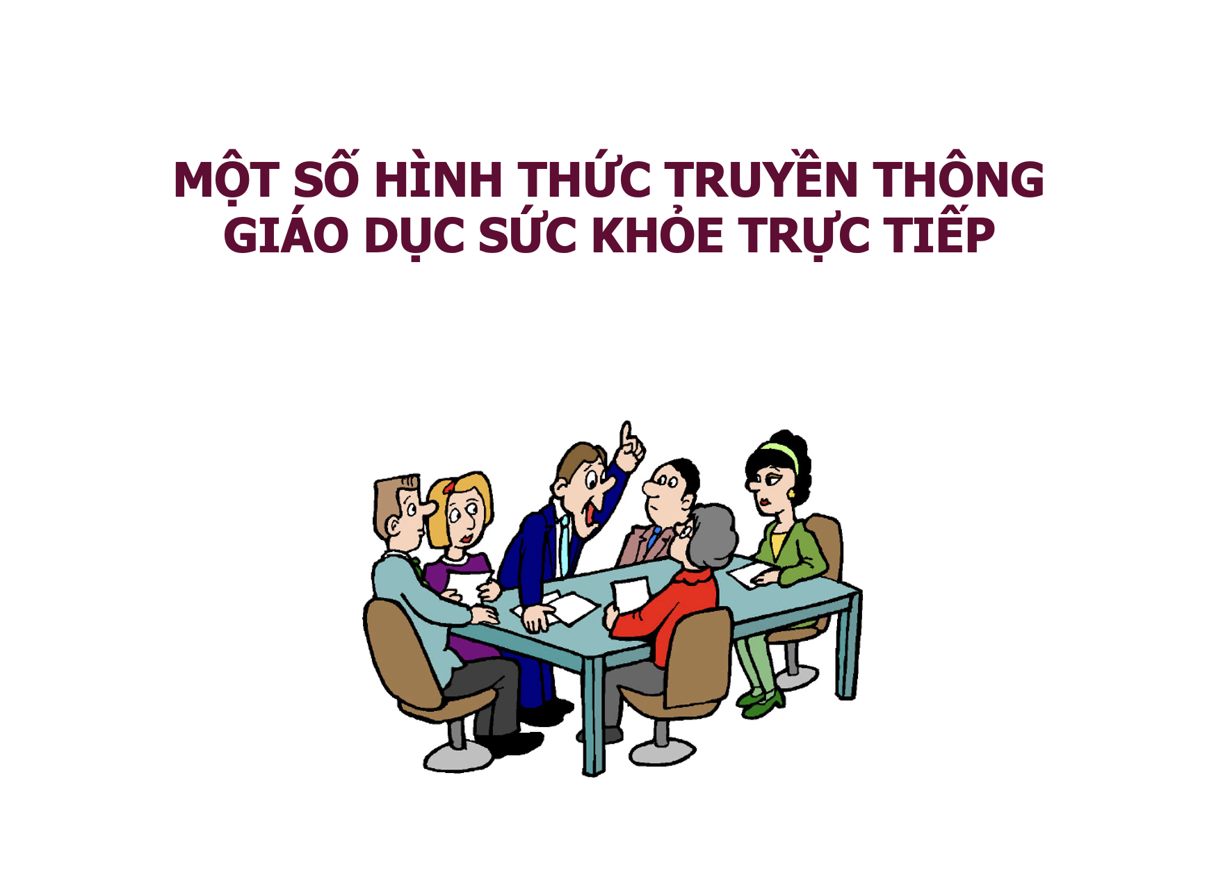 Tài liệu này giới thiệu 4 hình thức truyền thông trực tiếp: tư vấn GDSK, thăm hộ gia đình, thảo luận nhóm, và nói chuyện sức khỏe.