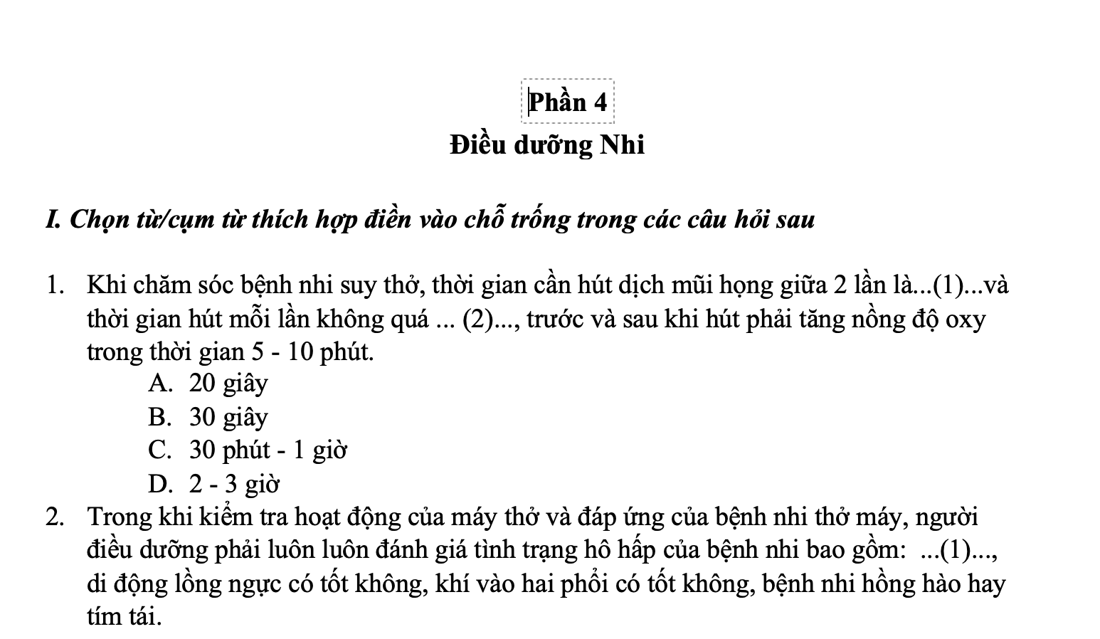 1. Phần I – Chọn từ/cụm từ thích hợp điền vào chỗ trống