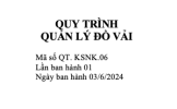 Tài liệu “Quy trình quản lý đồ vải” (QT.KSNK.06) là hướng dẫn chuẩn của bệnh viện về toàn bộ công tác quản lý đồ vải y tế – từ cấp phát, thu gom, phân loại, giặt là, vận chuyển, đến kiểm tra – giám sát và tiêu hủy. Quy trình được xây dựng dựa trên các quy định của Bộ Y tế về kiểm soát nhiễm khuẩn, đảm bảo đồ vải sử dụng trong bệnh viện đủ số lượng – đúng chất lượng – an toàn – sạch khuẩn, góp phần giảm nguy cơ lây nhiễm chéo và nâng cao chất lượng chăm sóc người bệnh.