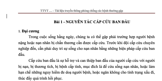 Nguyên tắc cấp cứu ban đầu – hướng dẫn đánh giá hiện trường, quy trình ABCDE, đặt tư thế an toàn, xử trí gãy xương, chấn thương đầu, cột sống.