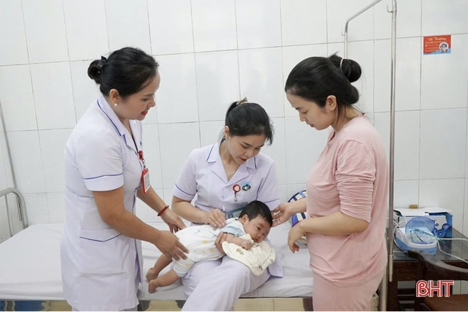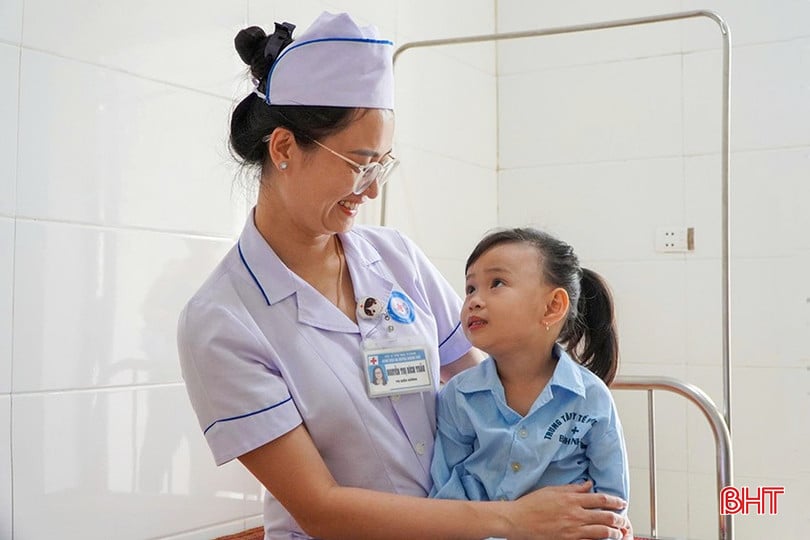 Điều dưỡng như "người mẹ thứ hai" của các bệnh nhi. Ảnh chụp tại Trung tâm Y tế Hương Khê