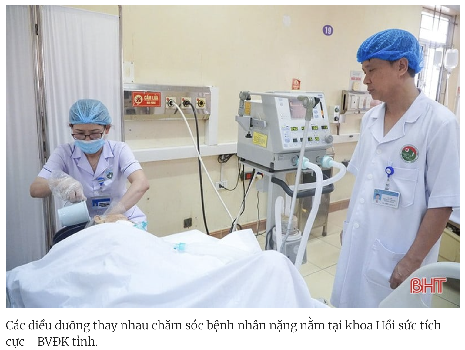 Các điều dưỡng thay nhau chăm sóc bệnh nhân nặng nằm tại khoa Hồi sức tích cực - BVĐK tỉnh.